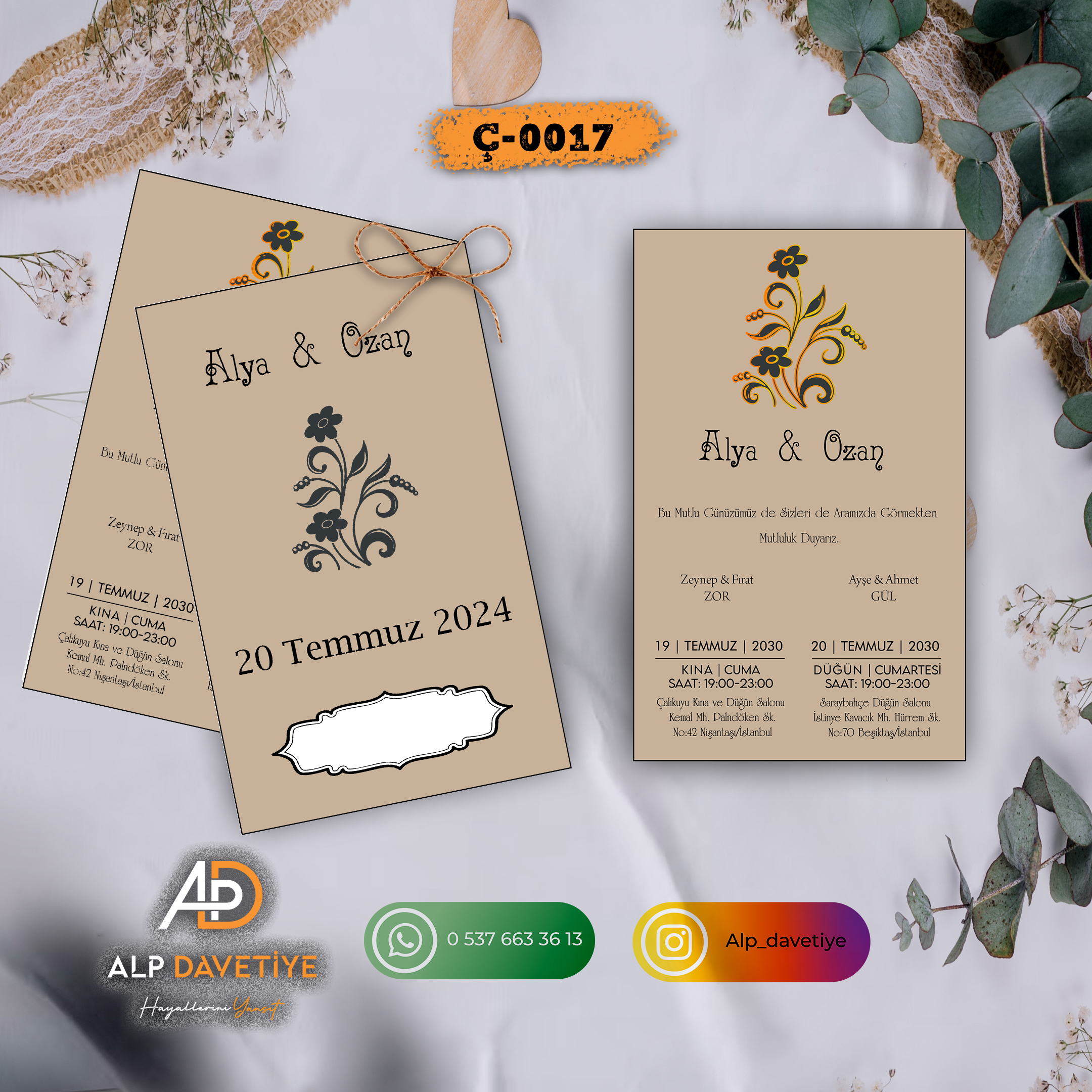 • Davetiyelerinizde kullandığımız kağıt 230 Gram Amerikan Bristol kağıdıdır. Kartpostal, kitap kapağı, defter kapağında kullanılan kağıda benzemektedir. Kesinlikle A4 kağıdı gibi ince ve hafif değildir.