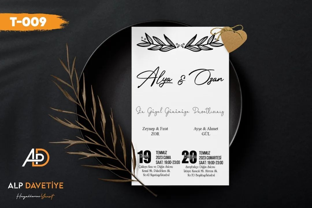 • Davetiyelerinizde kullandığımız kağıt 230 Gram Amerikan Bristol kağıdıdır. Kartpostal, kitap kapağı, defter kapağında kullanılan kağıda benzemektedir. Kesinlikle A4 kağıdı gibi ince ve hafif değildir.