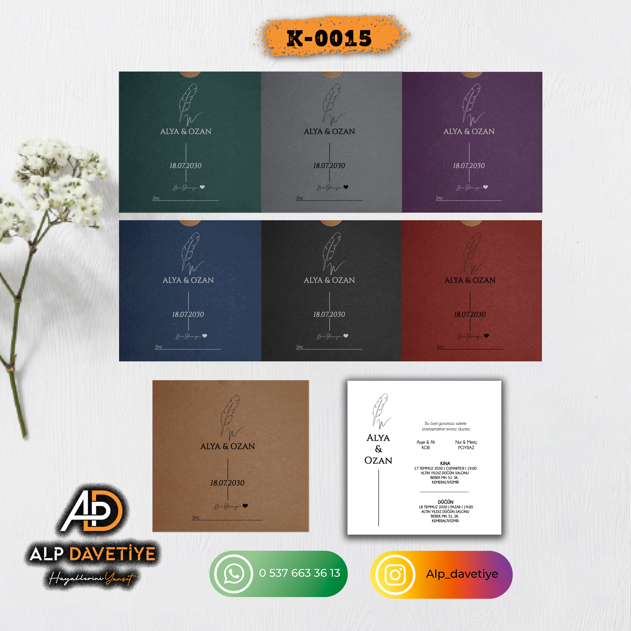 • Davetiyelerinizde kullandığımız kağıt 230 Gram Amerikan Bristol kağıdıdır. Kartpostal, kitap kapağı, defter kapağında kullanılan kağıda benzemektedir. Kesinlikle A4 kağıdı gibi ince ve hafif değildir.